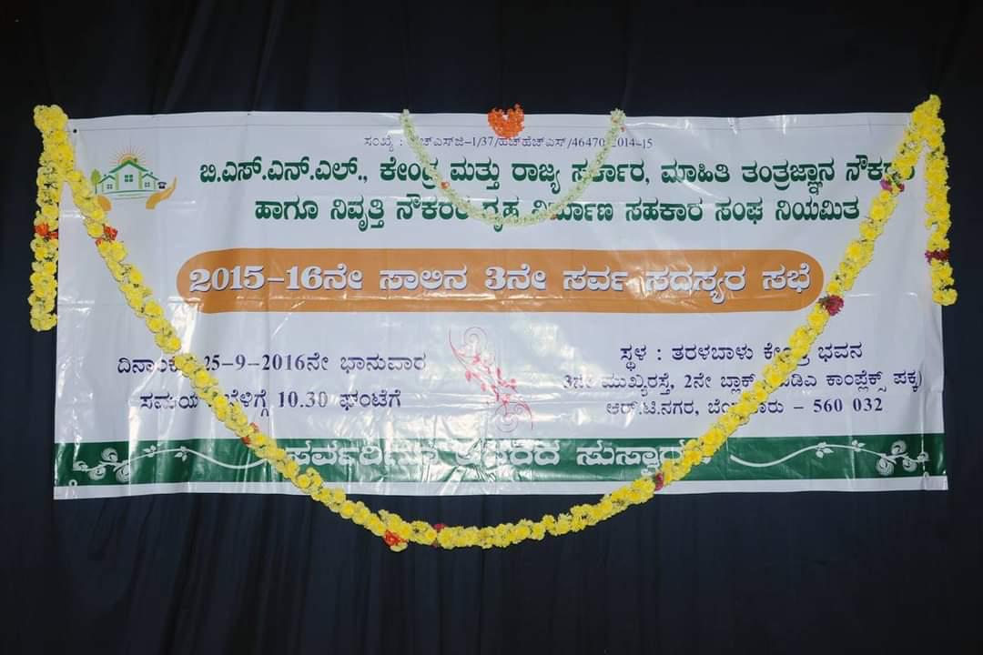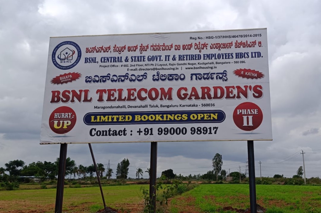 We, BSNL, Central & State Govt. IT & Retired Employees HBCS LTD, accept payments only through Cheques/DD/RTGS/NEFT/IMPS addressed to the society accounts as provided on this website. Please refrain from any payments to unauthorised accounts and reach out to the society if anybody persists with cash/blank cheque payment/other modes of payment. We are an authorised Housing Society registered under the State Govt. of Karnataka.